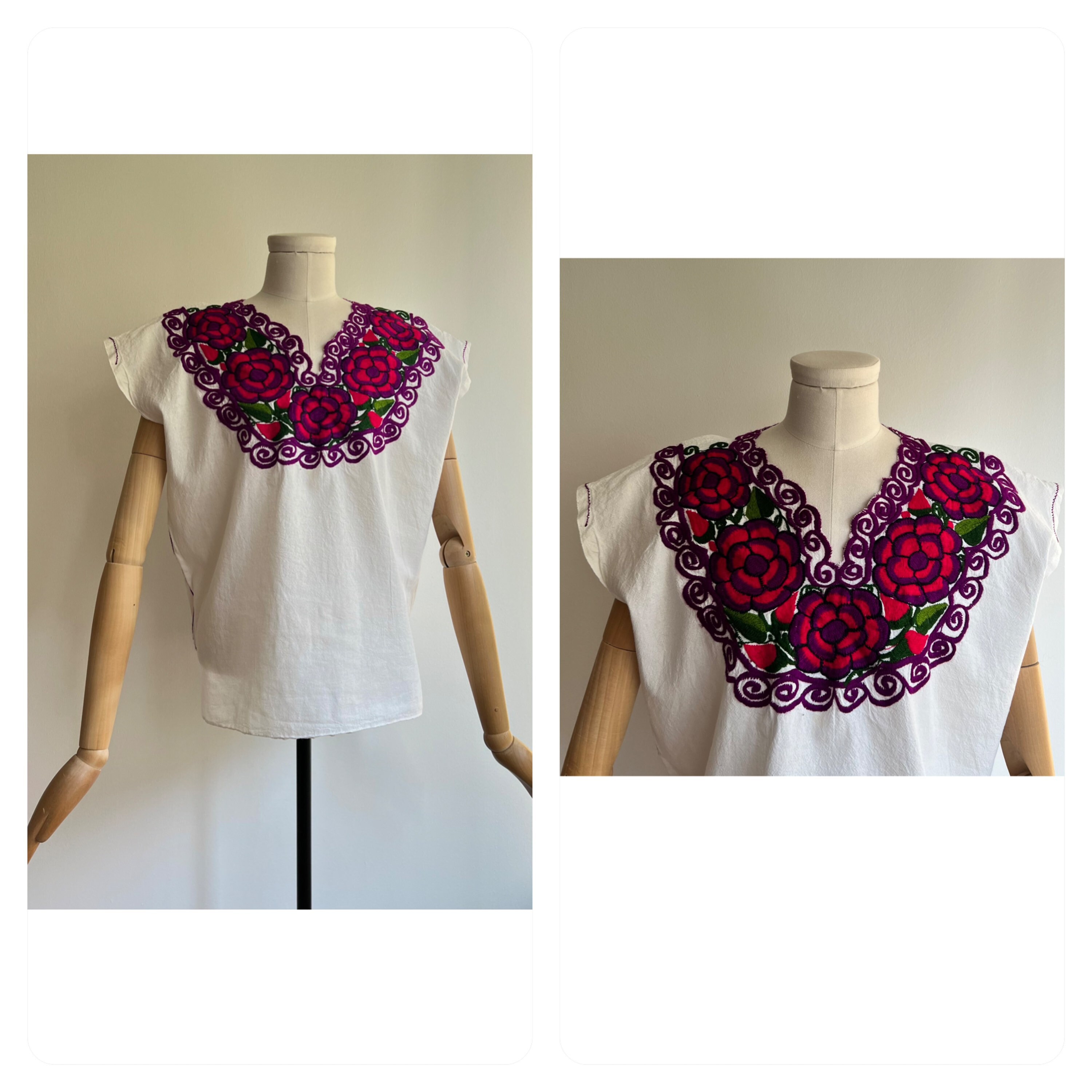 La Lijera Embroidered Peasant Blouse Mexican Style White